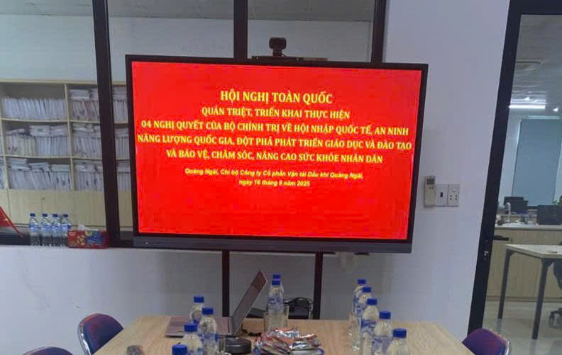 Sáng ngày 16/9/2025, Chi bộ PVTrans Quảng Ngãi đã tổ chức cho cán bộ, đảng viên, người lao động tại đơn vị tham dự Hội nghị trực tuyến toàn quốc quán triệt, triển khai thực hiện 04 Nghị quyết quan trọng của Bộ Chính trị gồm: