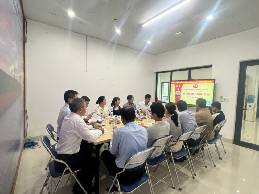 Sáng ngày 03/10/2025, Chi bộ PVTrans Quảng Ngãi đã tổ chức cuộc họp định kỳ tháng 10/2025. Tham dự có đồng chí Đinh Minh Tú – Bí thư Chi bộ/Chủ tịch HĐQT, đồng chí Hoàng Minh Tuân – Phó Bí thư Chi bộ/Giám đốc Công ty cùng toàn thể đảng viên Chi bộ.