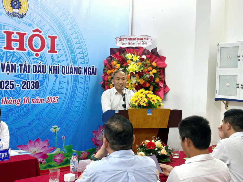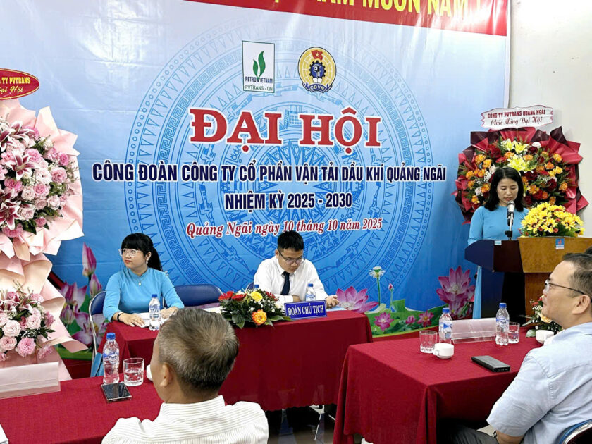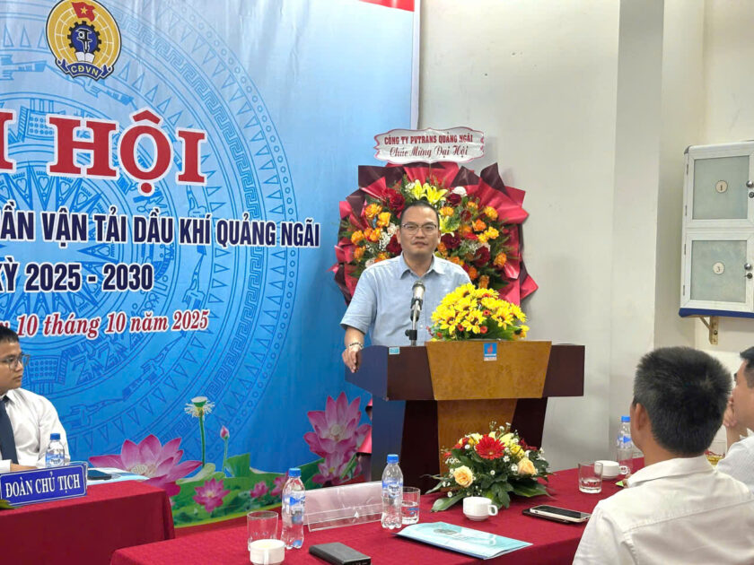 Chiều ngày 10/10/2025, Công đoàn Công ty Cổ phần Vận tải Dầu khí Quảng Ngãi (PVTrans Quảng Ngãi) đã tổ chức thành công Đại hội Công đoàn lần thứ V, nhiệm kỳ 2025–2030, trong không khí “Đoàn kết – Dân chủ – Kỷ cương – Đổi mới – Phát triển.”